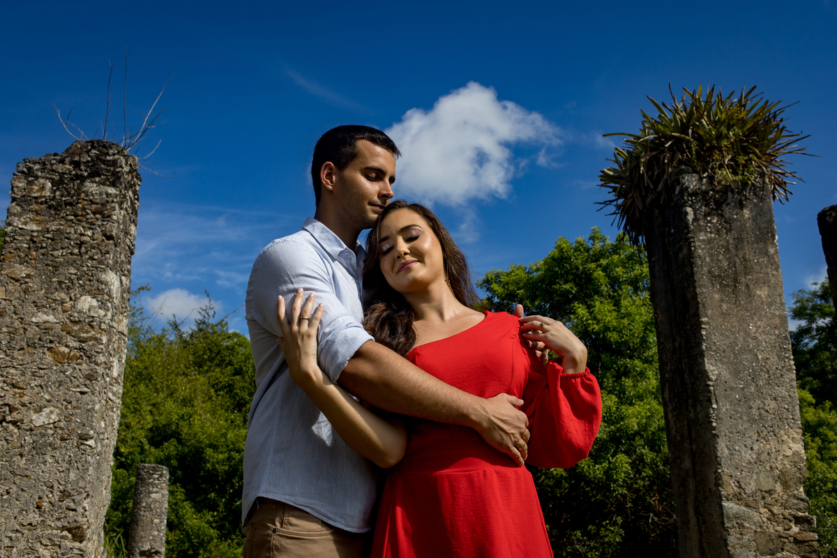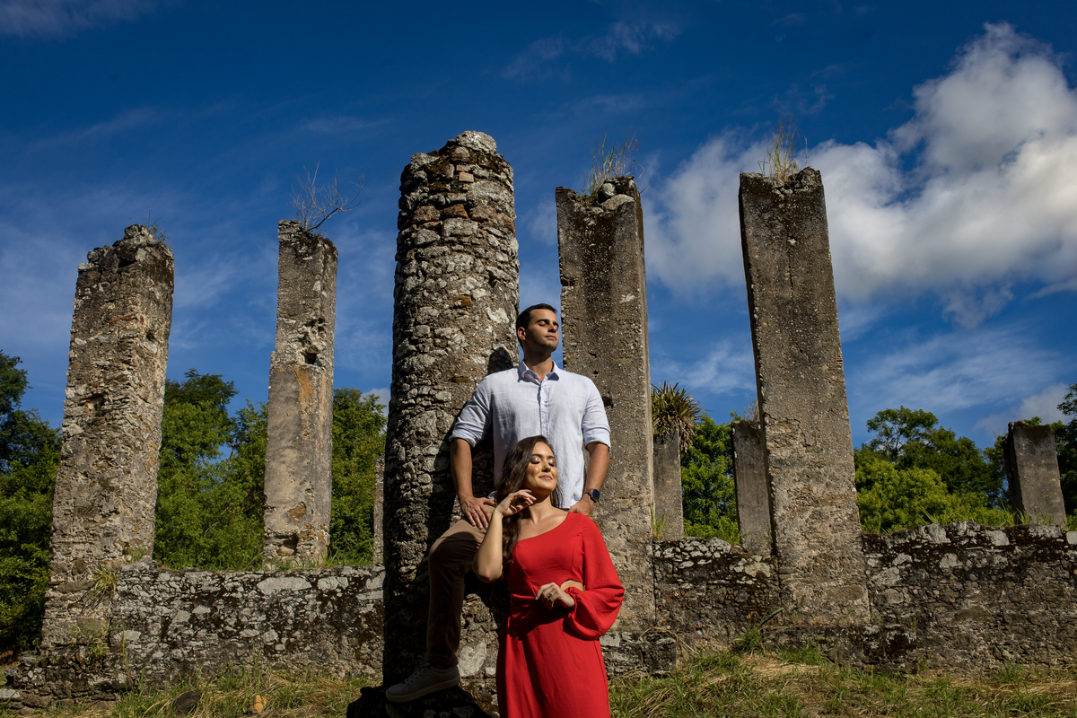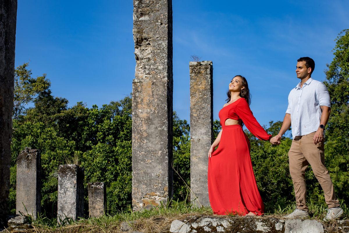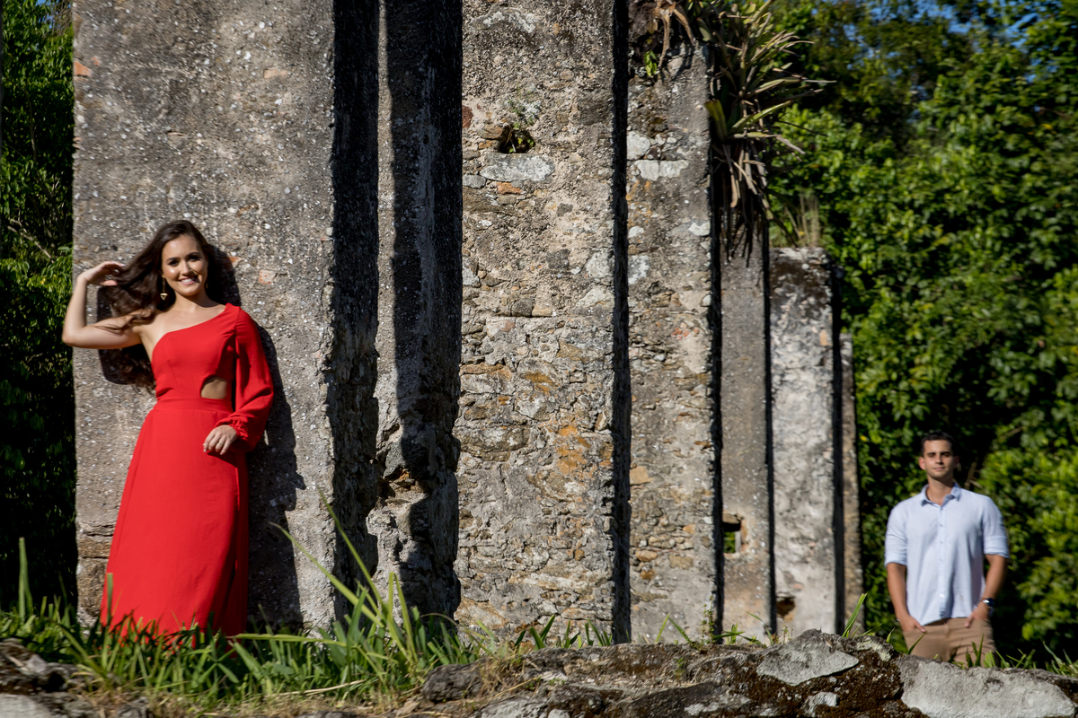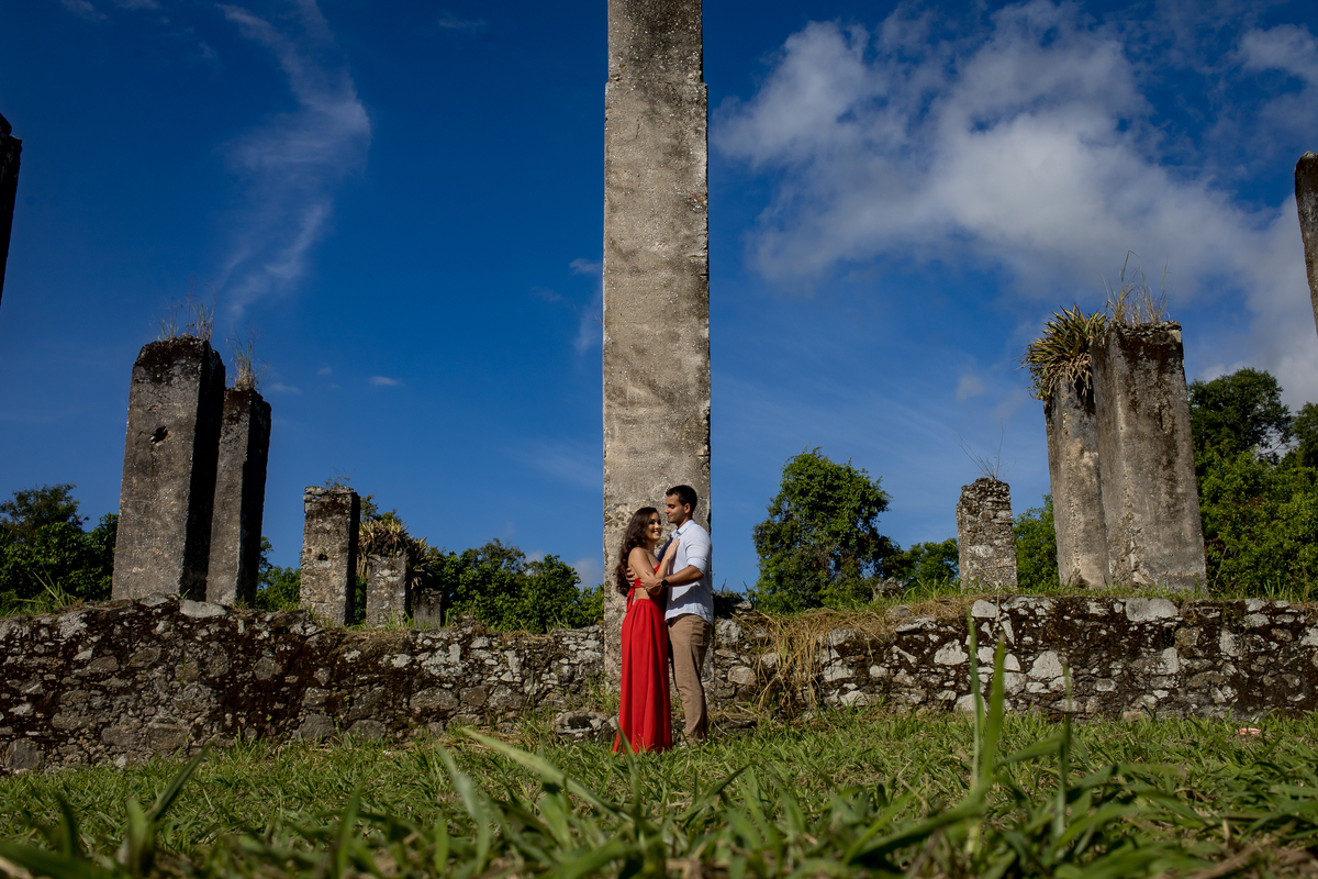 Quand marcamos a data do ensaio, a Ale já ficou ansiosa, rsrsrsr Conversamos muito pra definir local, horário e as roupas a serem usadas. Até então eu não conhecia o Gustavo, e ela só falava que ele não gostava de fotos. O ensaio foi rolando e iamos conversando, rindo, fotografando e curtindo o lugar, as ruínas do Rio Benevente tem uma vide incrivel!!! Em pouco tempo de ensaio ele já estava tão a vontade que já estava pedindo foto, rsrsrsrsr Depois das ruínas fomos para a praia e fomos agraciados por um belo fim de tarde!!!