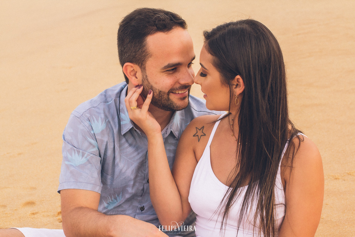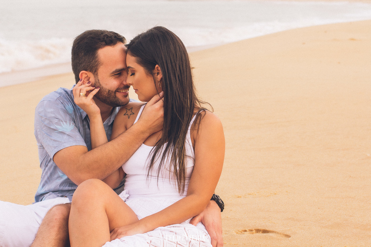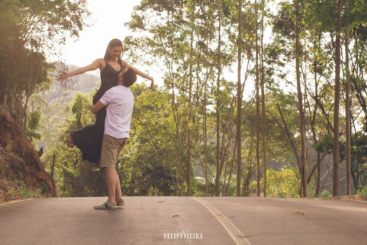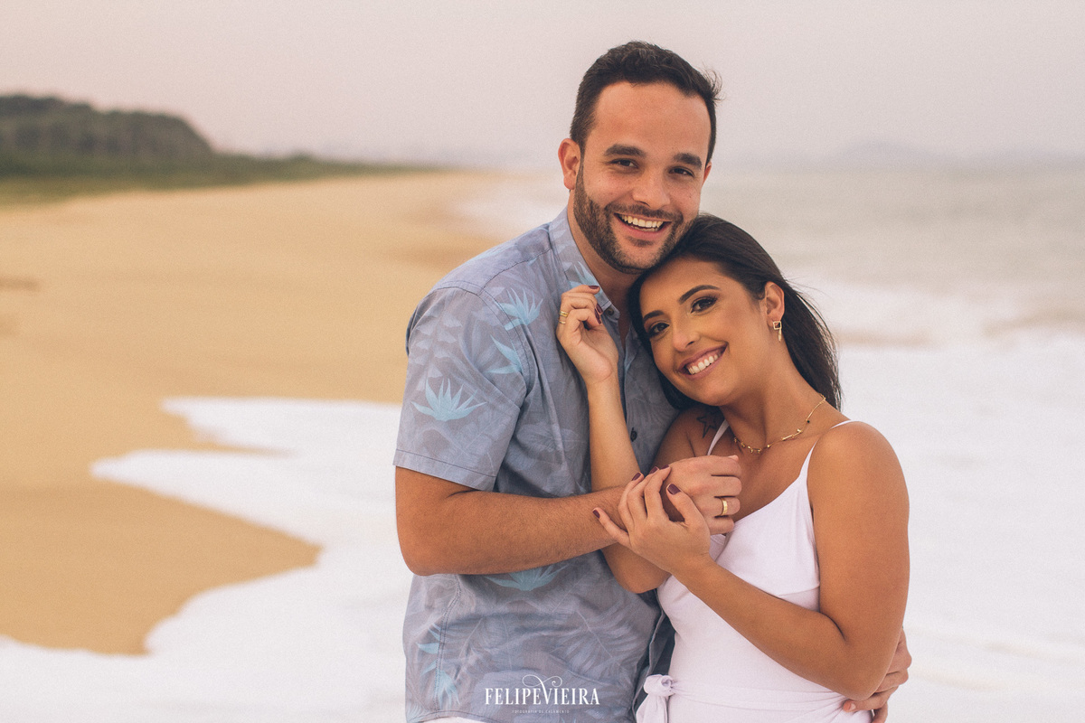 No dia do ensaio, logo pela manhã, algumas nuvens ameaçaram fechar o céu, liguei para a Thais para ver como iríamos proceder, e ela foi taxativa: TEM QUE SER HOJE!!! E ela estava certa, tinha que ser ontem mesmo. As nuvens se afastaram um pouco, e a parte de montanha das fotos tivemos um lindo sol, e muitas gargalhadas. Logo de cara, a Thais avisou: "somos os piores para fotografar" E deram uma verdadeira aula de sintonia, simpatia e com certeza se divertiram muito. Quando fomos para a praia, uma nuvem gigante, entrou na frente do sol, mas nada tirou o brilho no olhar do Christiano toda vez que ele encarava a Thais, e nada ofuscou o lindo sorriso dela sempre que olhava para ele.